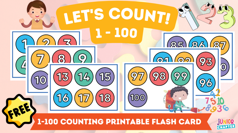Help your kids level up their counting skills with this 1-100 Counting Flashcard!